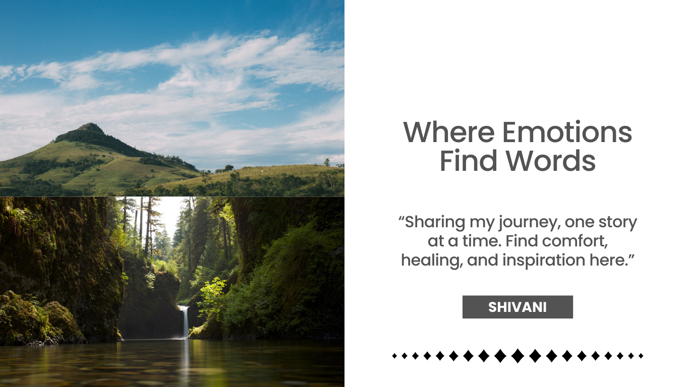 Whether you’re here to find inspiration, healing, or simply a reminder that your feelings are valid, I welcome you with open arms. Let’s grow, learn, and navigate life’s ups and downs together — one story, one emotion, and one moment at a time.